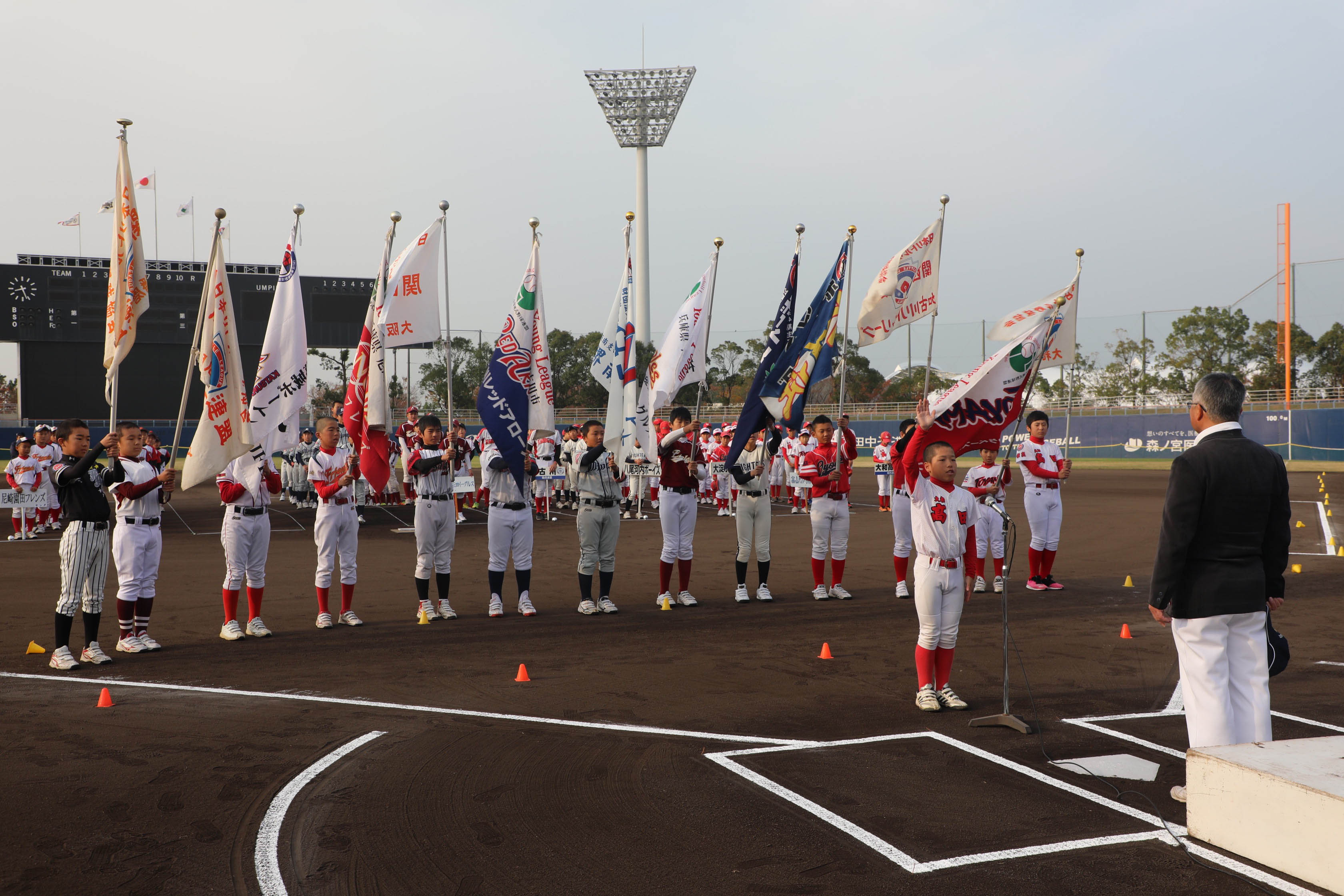 リトルリーグ・ボーイズリーグ・ヤングリーグの代表12チームの選手が堂々の入場行進を行い、式の最後には大和高田リトルリーグ主将河井隼太君が球場全体に響き渡る大きな声で選手宣誓を行った。