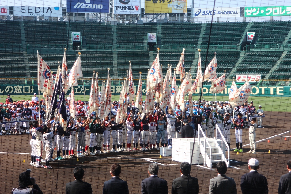 武庫川女子大学附属中学校・高等学校吹奏楽部の演奏、マーチングバンド部の部員の皆さまのご協力の下、開始、リトルリーグ関西連盟大会開催等にご後援、ご協賛、ご協力を賜っていますサンケイスポーツ様、スポーツ用品メーカー様、スポーツ団体様等、多くのご臨席をいただきました。