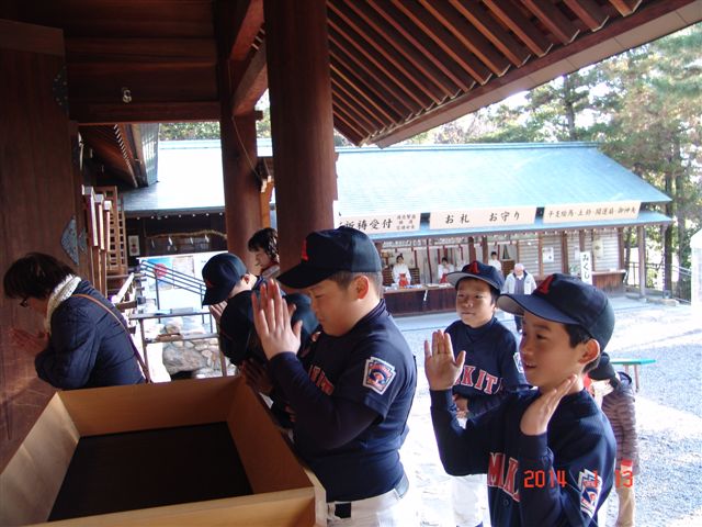 新年明けましておめでとうございます。平成26年1月13日(月・祝)阪神タイガースも参拝している廣田神社へ必勝祈願に行きました。選手一人一人様々な目標をお祈りしました。今年も一年怪我なく頑張りますので応援よろしくお願いします。 尼崎北リトルリーグ野球協会 リーグ代表 高寺 伸明