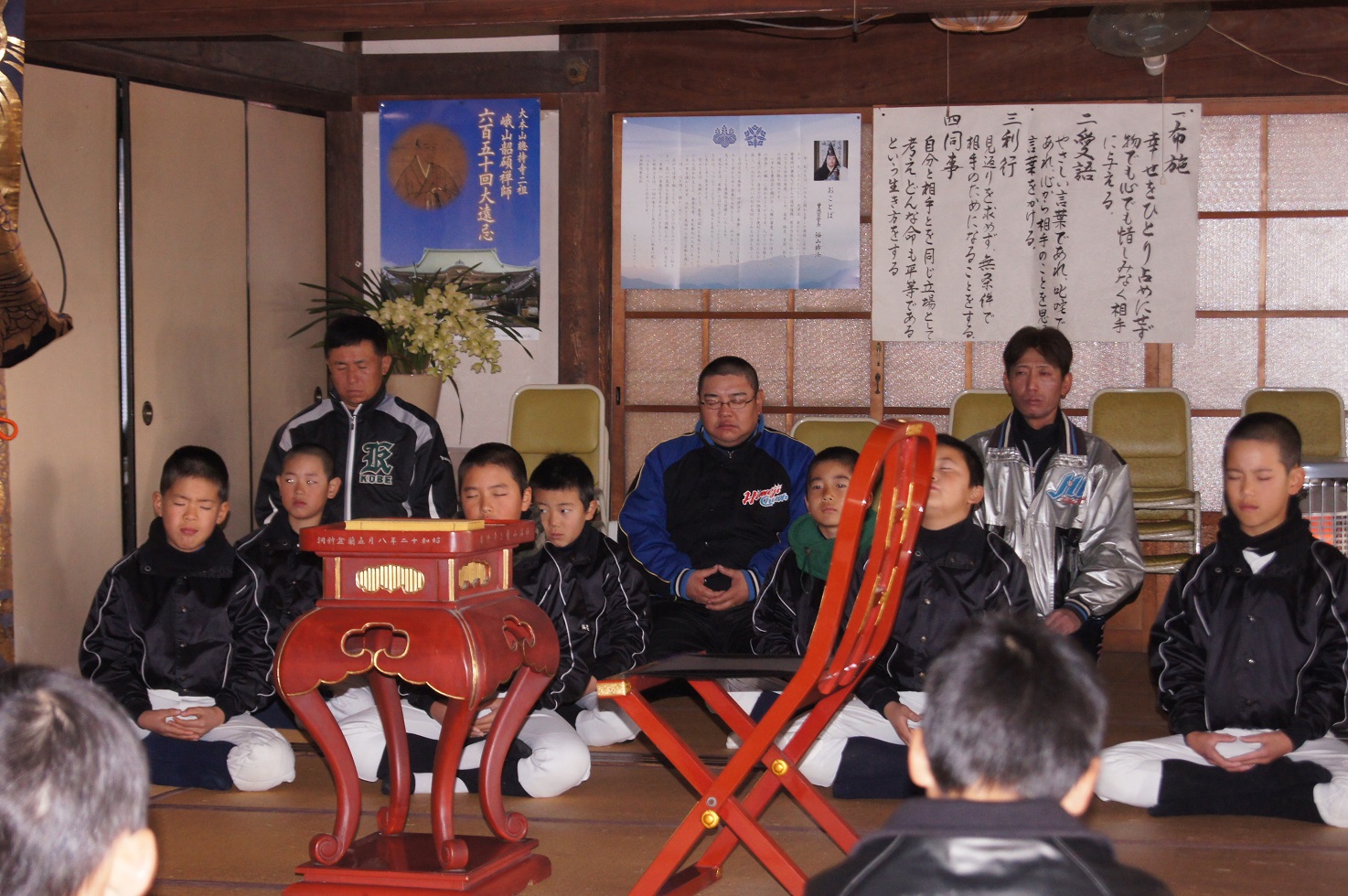 姫路中央リーグは現在、神戸リーグと連合で大会等に出場していますが、2014年最初の合同練習にあたり、幣リーグ顧問である医王寺にて、姫路中央、神戸両リーグの全選手、指導者が座禅を組み、心を落ち着かせ、精神を統一し、全員が心を一つにしました。今後も引き続いて行って行きたいと考えています。 姫路中央リトルリーグ野球協会 事務局長 江本 智裕