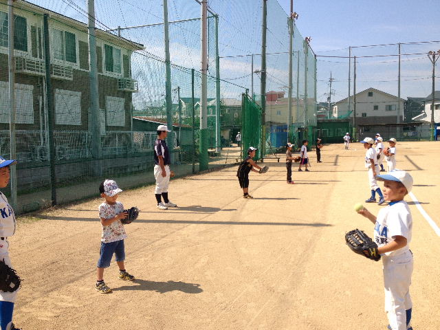 この日、1年生2名、2年生4名、3年生1名、4年生1名の計8名の参加を見、マイナーの選手たちと一緒に半日を楽しみました。入会が期待されます。