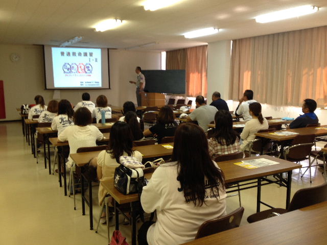 この日の午後、シニアの部と合同で貝塚消防本部で救命・救急(AED)講習会を行いました。貝塚リーグでは「何時でも、何処でも」を合言葉に毎年この時期に行っているもので、今年も20名の保護者、役員が参加し熱心に受講しました。