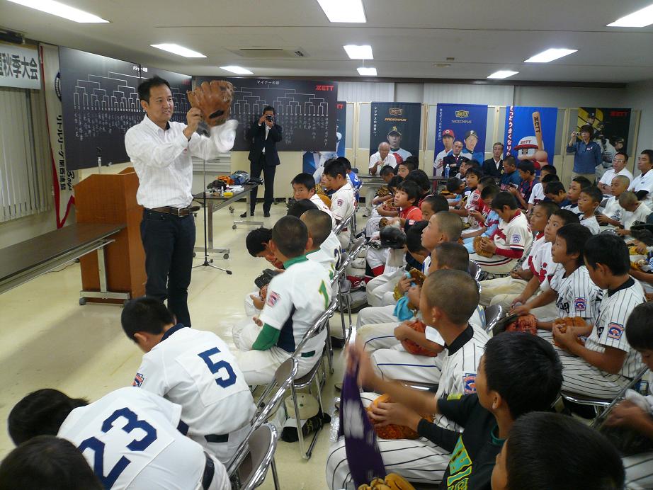 また、ゼット社北口慎一様による選手の命でもある「グローブの手入れの仕方」を教えて頂き、選手達が持参したグローブで実践しました。最後に関西連盟湯川義淳審判部長の大会規定の説明がありました。