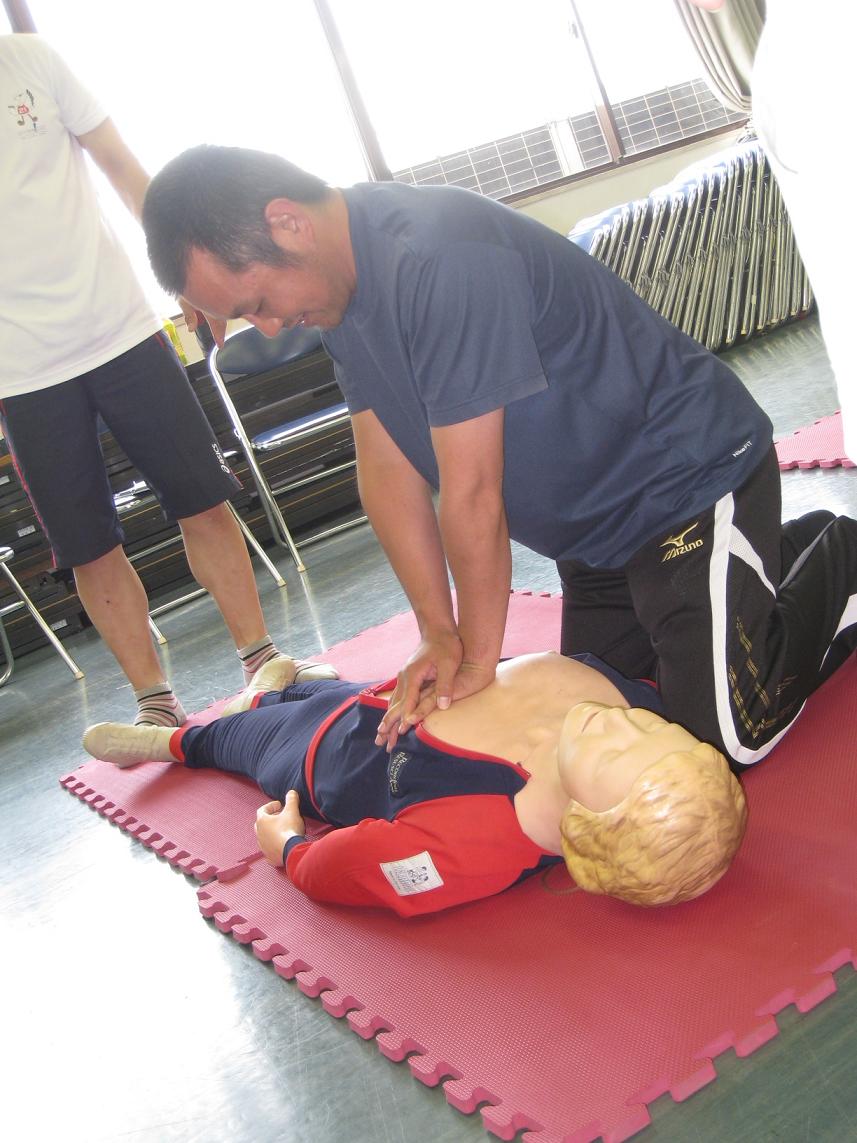 当リーグでは指導者はもちろん、選手全員のお父さんか、お母さんが講習を受け、いざという時に、素早く応急処置が出来る活動に取り組んでいます。