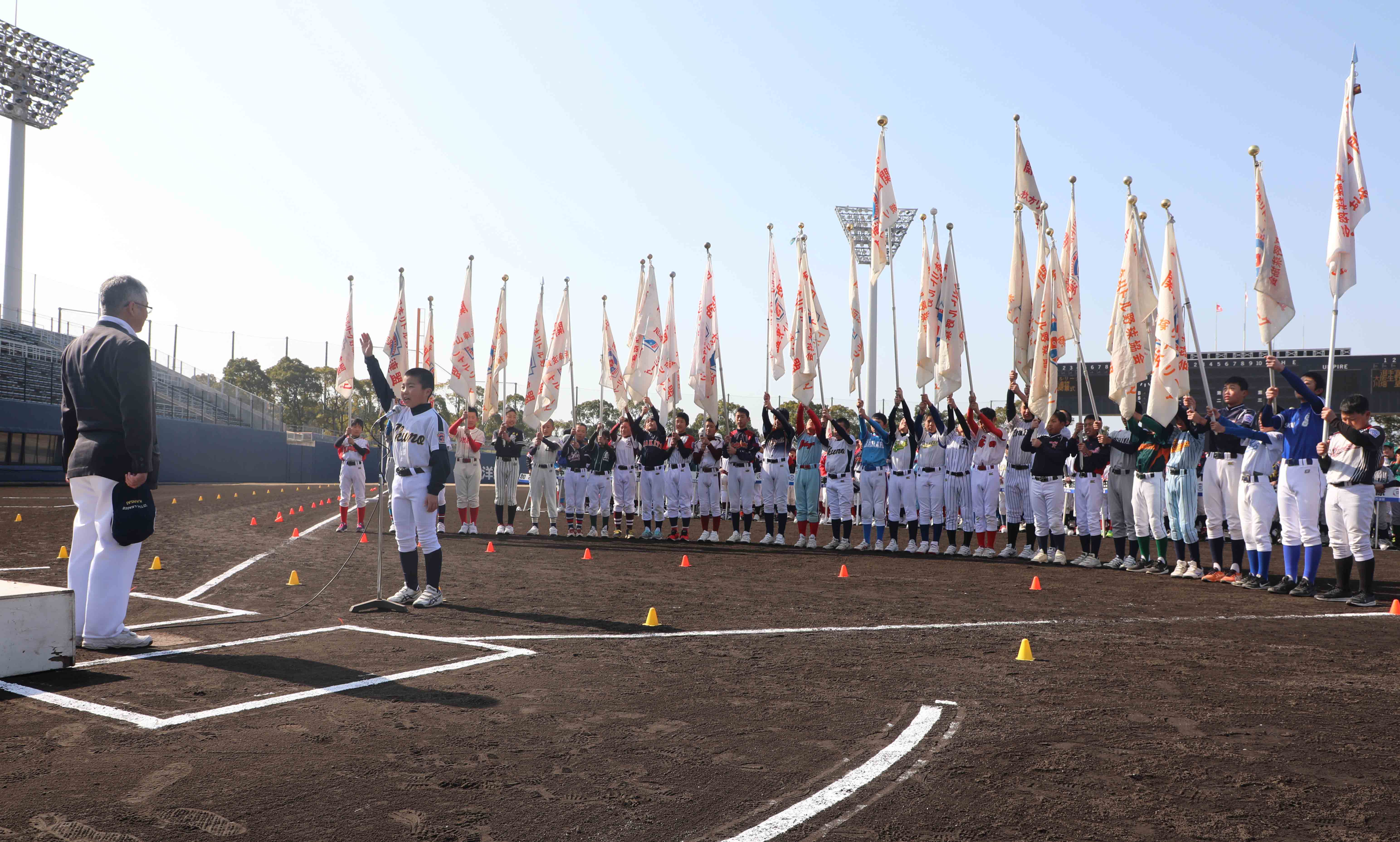 大阪生野リーグ川畑皇樹君が力一杯に選手宣誓を行い、その後はリトルリーグの歌をみんなで声高々に歌い式を終えた。