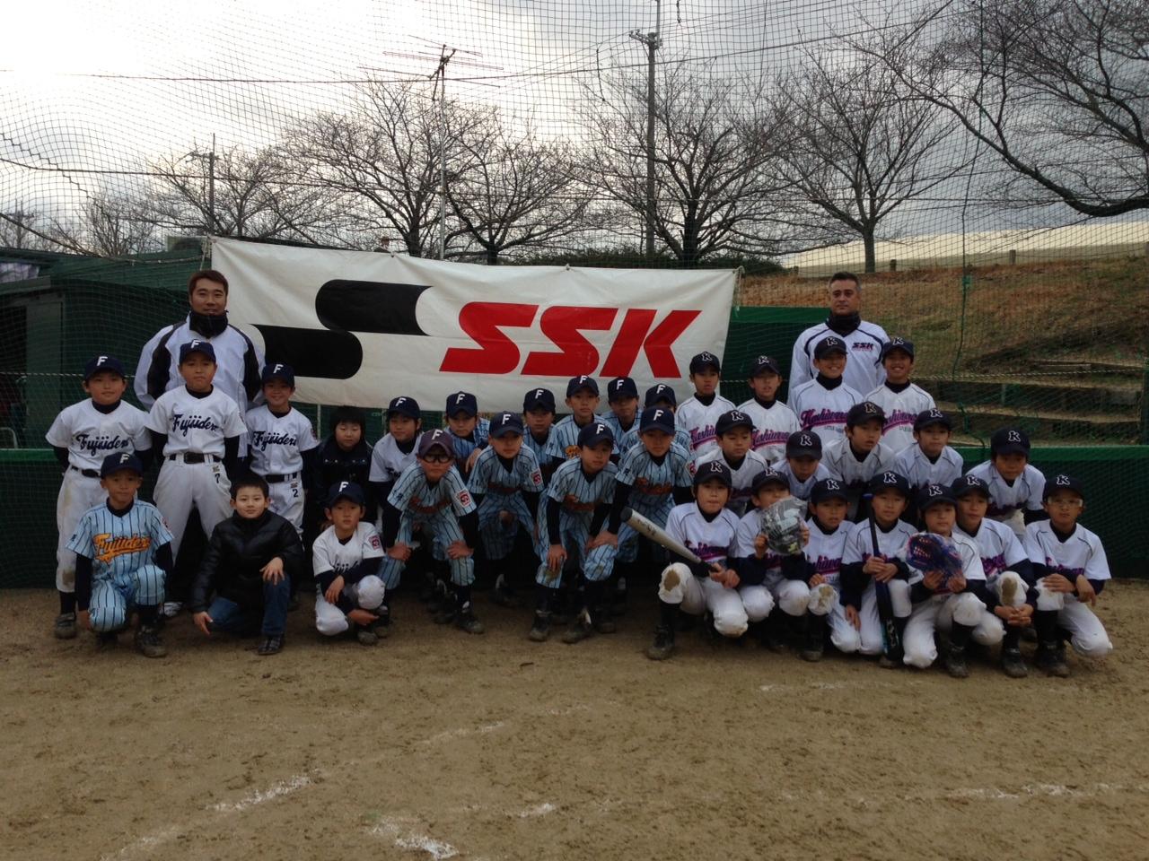 株式会社エスエスケイ様と地元の藤井寺スポーツ様のご厚意、ご協力のもと藤井寺リーグと柏原リーグ合同の野球教室を開催致しました。