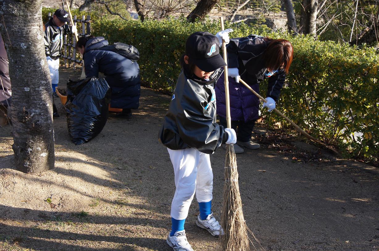 平成24年12月24日(月・祝)に姫路市の小中学生硬式野球チームで構成している団体「姫路少年硬式野球協会」主催の『姫路城清掃ボランティア』に選手、指導者、父兄で参加。