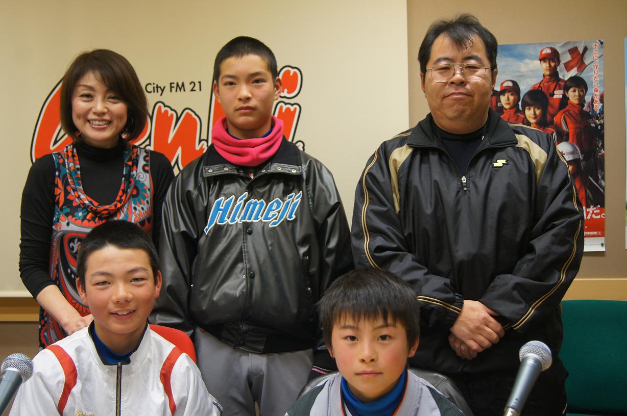 今年は6年生が7名となっており、1月14日の1日目は木下悠斗君、三村怜央君、三谷悠馬君の3名がFM元気の番組『飛び出せ街の元気人』に出演。始めは緊張した様子でしたが、パーソナリティーの三宅一美さんから「将来の夢は?」の質問に全員が元気な声で「プロ野球選手!」と答えていました。選手達にとっても、貴重な経験となったと思います。