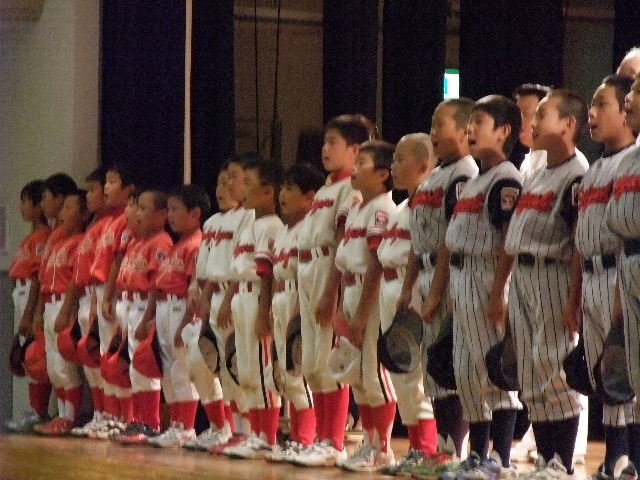 これは2月の春季大会抽選会に引き続き行ったもので、今回は締めくくりとして「リトルリーグの歌」を元気一杯に歌って、参加160チームの代表の方々から大喝采を受けました。大会共催の河川環境管理財団関係者の方より、毎回来てくださいとのお言葉を頂戴し大成功で帰ってきました。