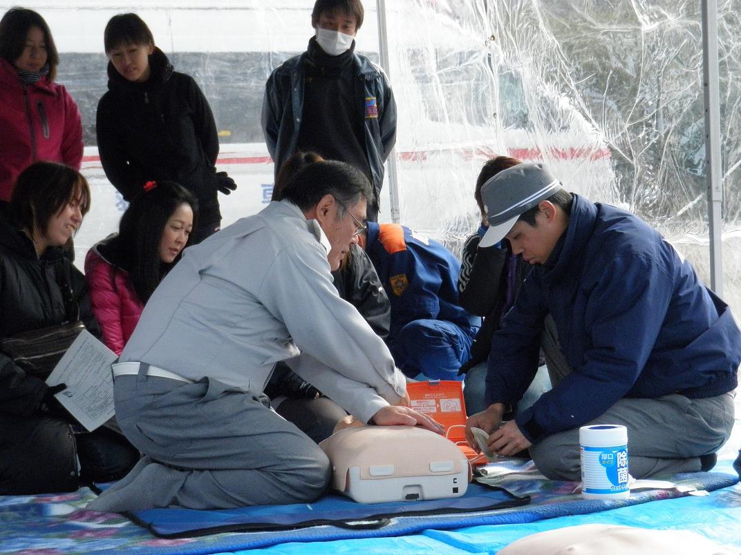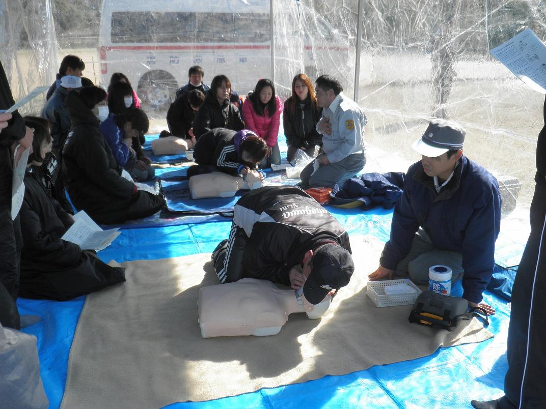2012年2月19日(日)権現ダムグランドに加古川市消防署両荘分署より救急隊及び消防隊の方にお越しいただき、救急講習を実施しました。