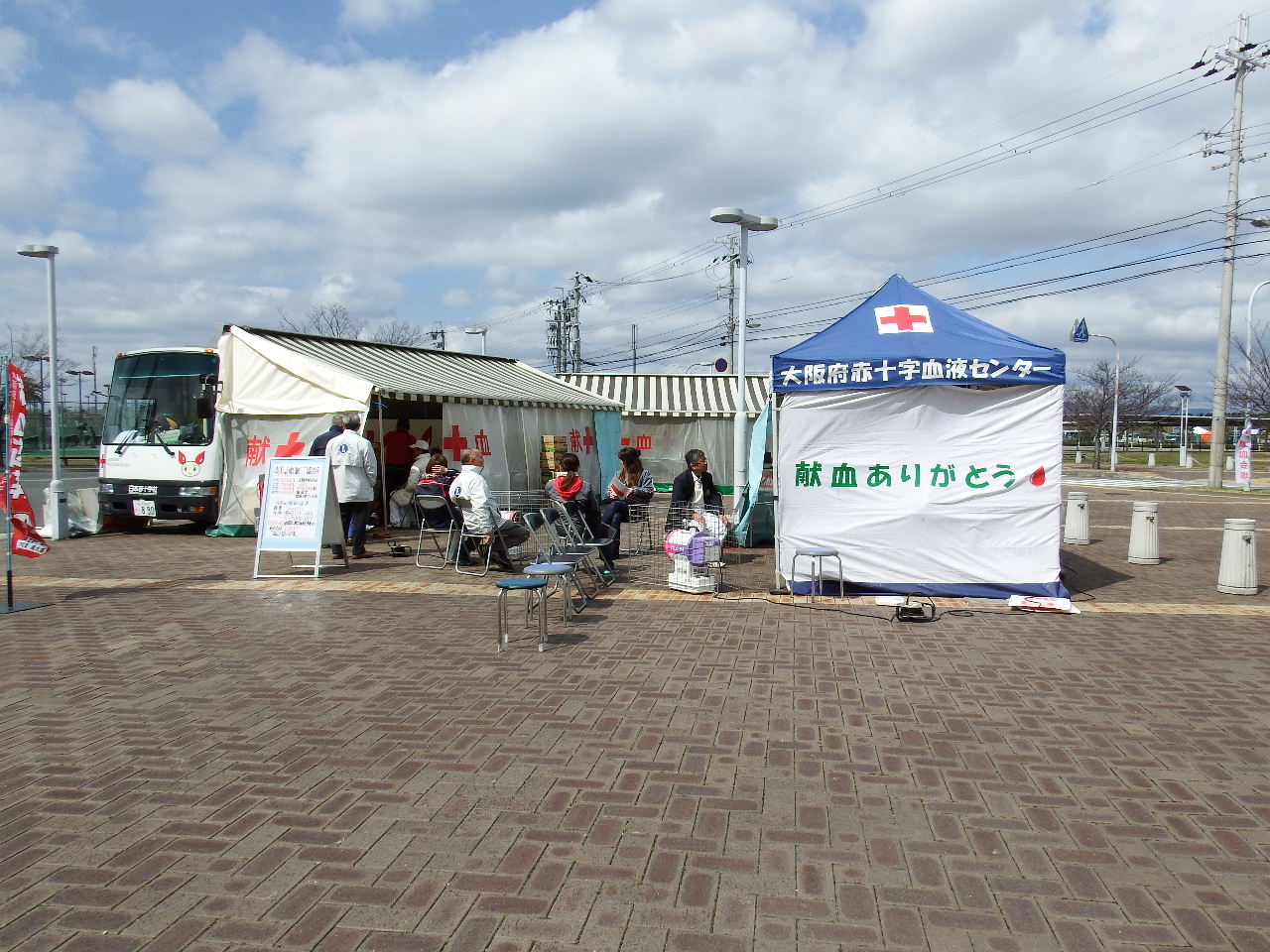 球場外では昨年に続き八尾ライオンズクラブと共催で献血事業を行いました。最近献血の量が不足気味の中、今年も100名を越える提供者があり、大変感謝をされています。
