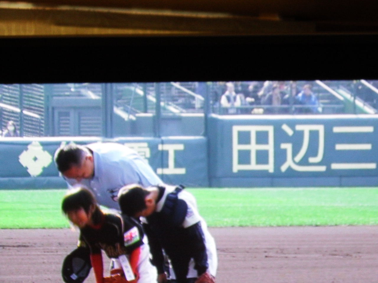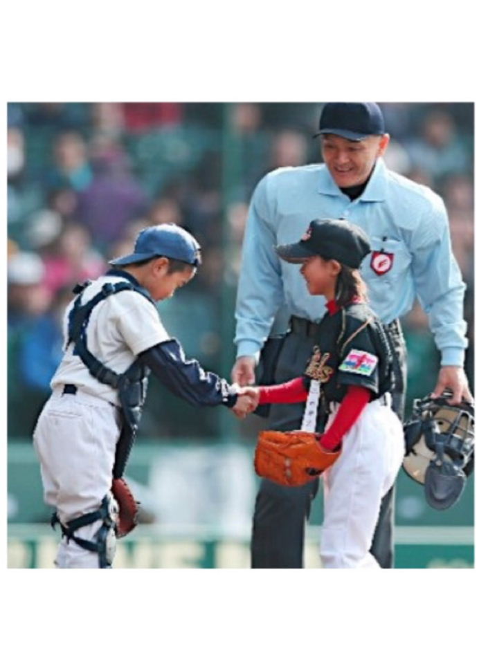 甲子園球場で行われている選抜高校野球大会第2日の22日、東大阪リトルの山西勇輝君がソフトボールの芝田みらいさんの投球をしっかりキャッチ、大観衆の大きな喝采を受け見事大役を果たしました。この催しは、2020年東京オリンピックの種目に野球とソフトボールの復活を願い、雰囲気を盛り上げるために企画されたもので、山西君は大勢の希望者の中からリトルリーガー代表としてこの役割を射止めていたものです。