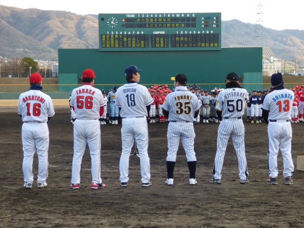 ブロック全体行事として東大阪花園セントラルスタジアムで新入団証書授与式&野球教室を開催いたしました。新入団証書授与式では66名の新しい仲間に松本忠賜東部ブロック長より入団証書と記念品が贈呈されました。その後。元プロ野球選手6名の方をアドバイザーにお迎えし野球教室を実施。参加したメジャー・マイナー合計で170名のリトルリーガーに「スローイング」「守備」バッティング」「ストレッチ」「トレーニング」をテーマにそれぞれの基本動作・注意点・ポイントなどを選手達にわかりやすく教えていただきました。午後には、各リーグ4名づつ選抜された32名のメジャー選手が2チームに分かれてオールスター戦を実施し交流を深めました。